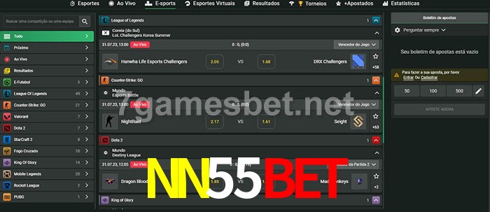 O NN55bet oferece uma grande seleção de opções de apostas em e-sports com probabilidades competitivas
